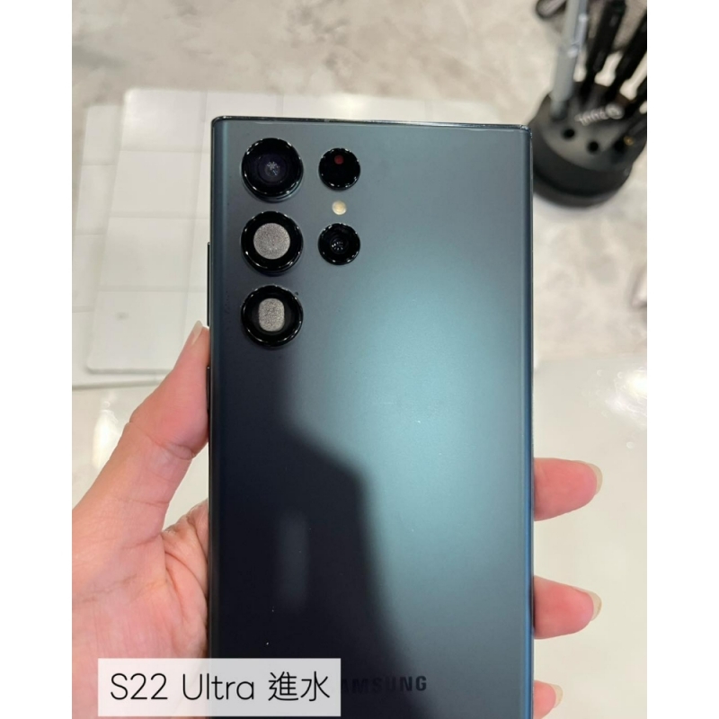 客人把 S22 Ultra 拿去清洗,導致手機進水。進水後又自行使用 吹風機吹手機,實際上反而提高內部受損風險。
